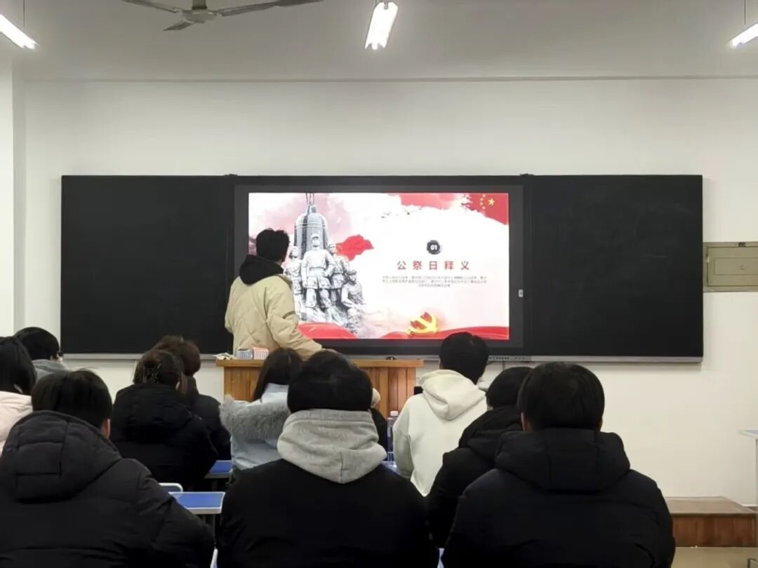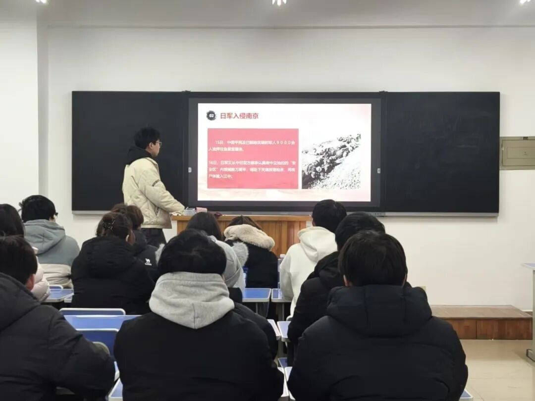 太阳集团tyc539macau党支部将“公祭日专题宣讲”作为主题活动的核心环节:宣讲人围绕两大核心内容展开讲解——先是立足国家公祭日的设立背景,从国际社会的战争纪念传统,讲到我国以立法形式确定12月13日为南京大屠杀死难者国家公祭日的深刻意义,让学生明确这一纪念日的法定性与精神价值;随后,宣讲人通过史实资料,详细还原“日军入侵南京”的暴行细节,教室内的青年们屏息聆听,对“民族伤痛”有了更具象的认知。