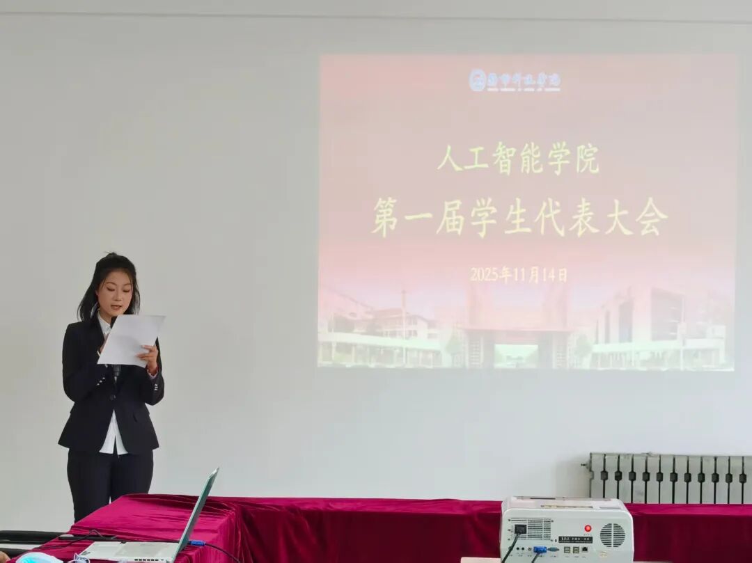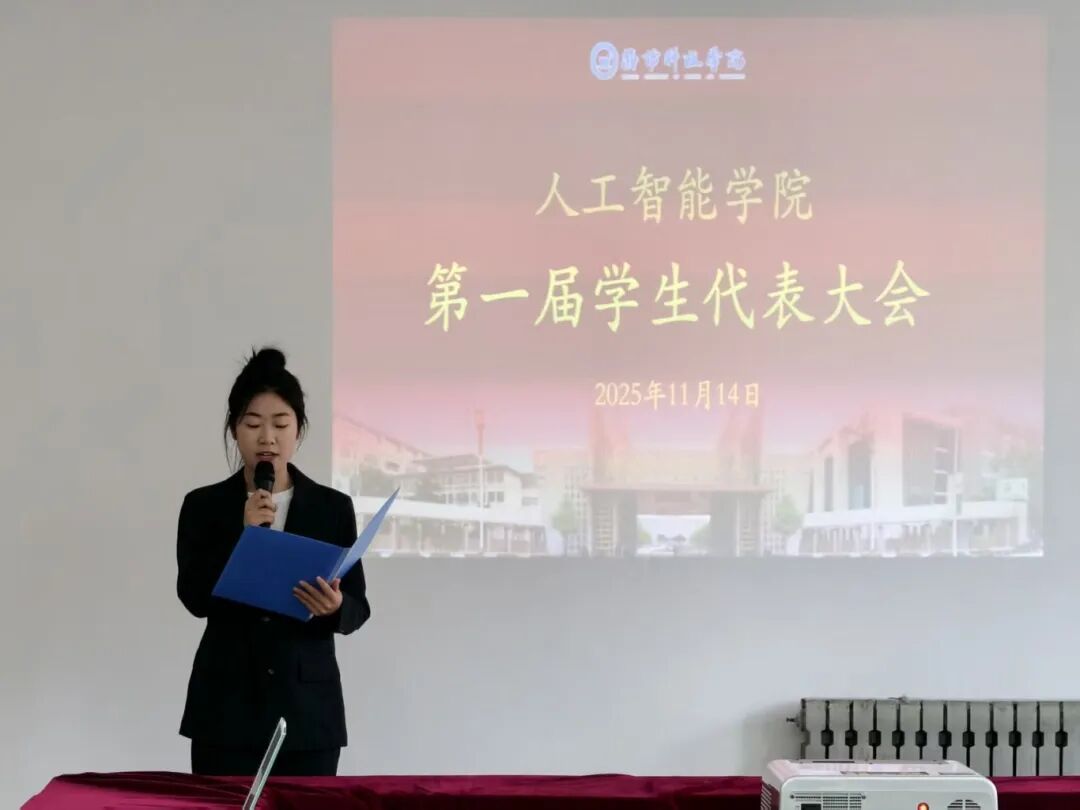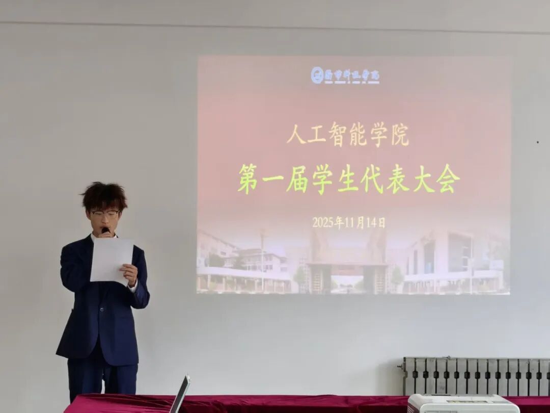杨金明同学作《人工智能学生会工作报告》,全面回顾了学生会成立以来的工作成果,提出了未来工作计划。